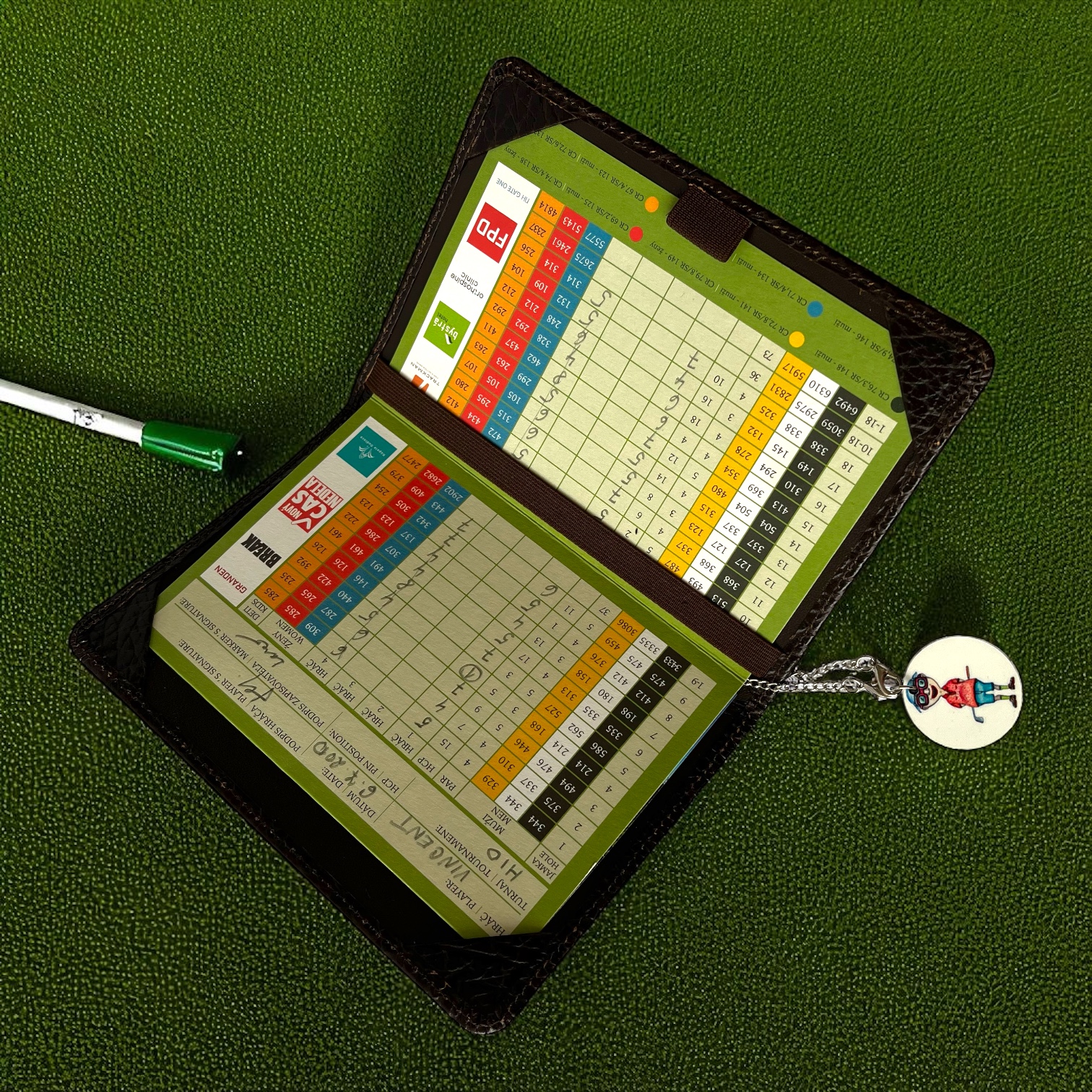 Keep your score in style (and dry in the rain)! Our dark brown scorecard holder is made from sturdy genuine leather – classy enough to impress your golf buddies, tough enough to survive your "just one more round" days.