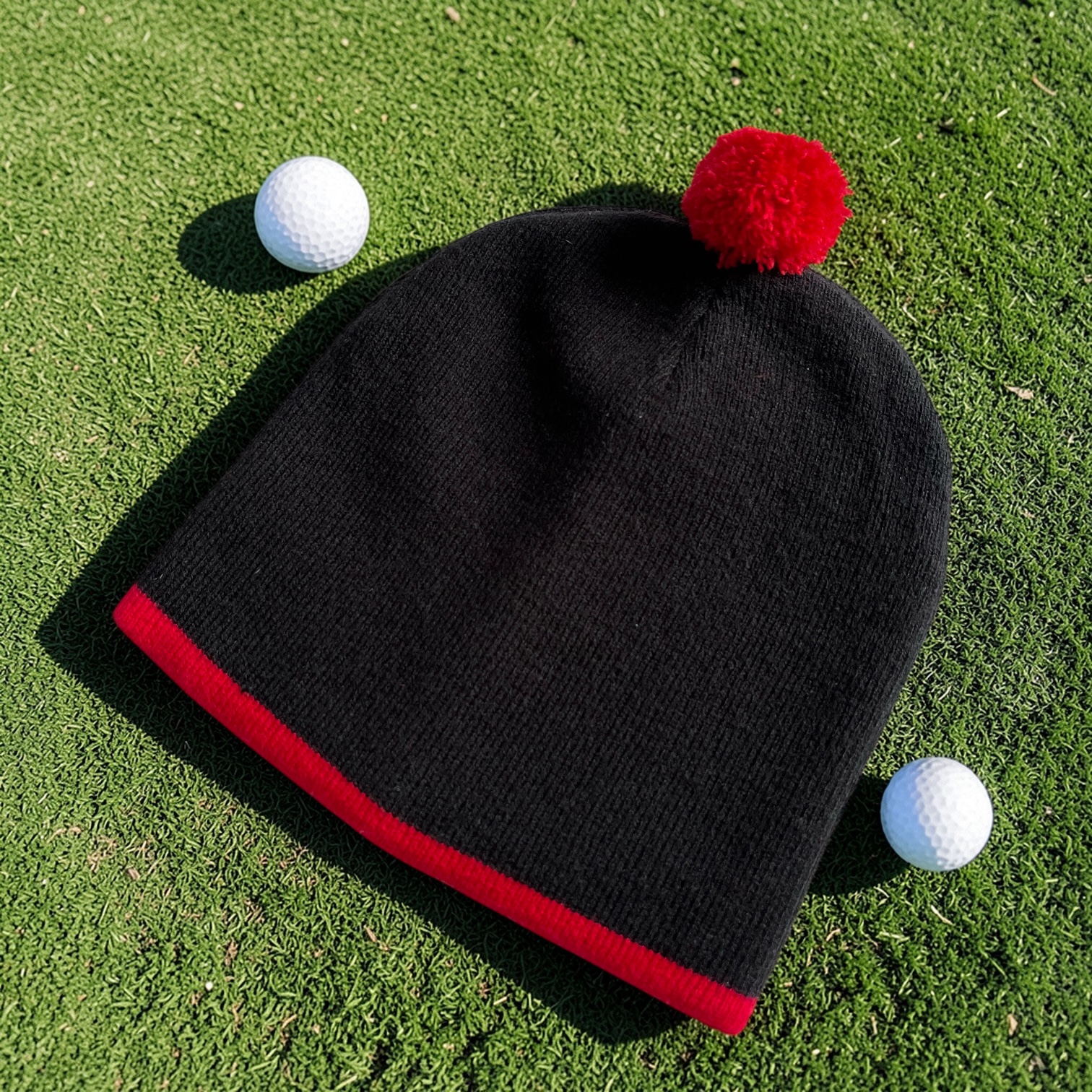 The minimalist design is complemented by a small red pom-pom, adding a playful touch and subtle style—just enough to stand out on the green without being over the top. It pairs effortlessly with any golf outfit, whether you're heading out for practice or a weekend round.