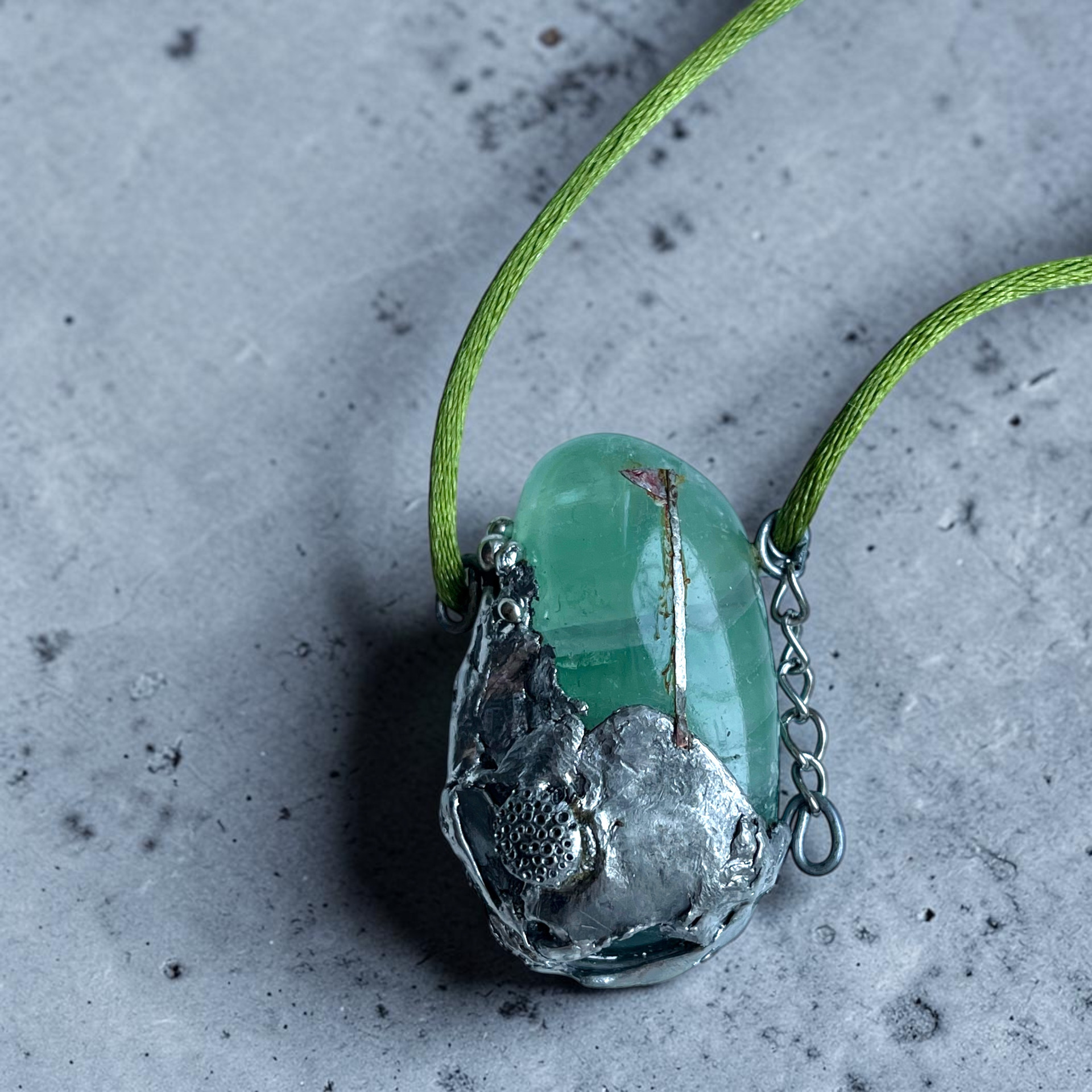Green crystal opens and stabilizes the heart chakra, transforms negative energies, stimulates creativity, and helps maintain balance in the endocrine glands.