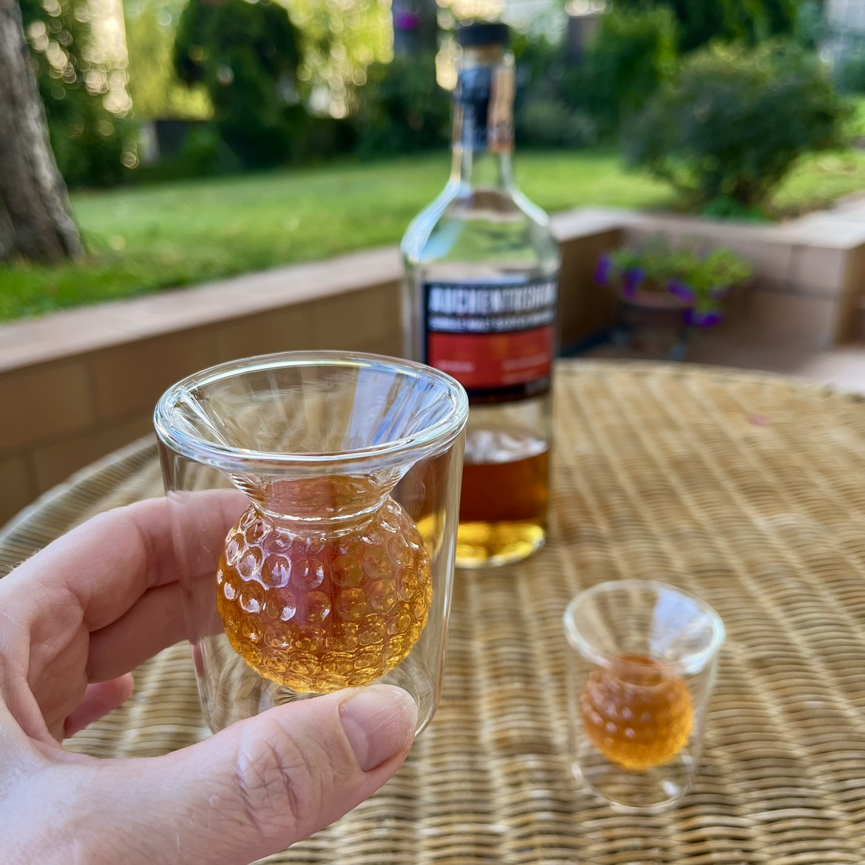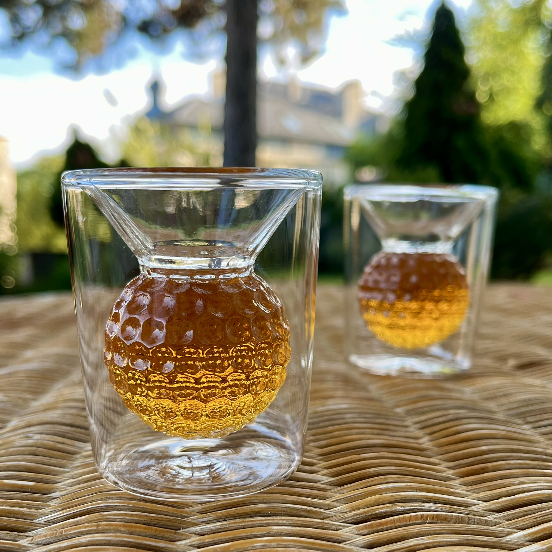 Double the glass, double the class! These little whiskey glasses are shaped like golf balls – perfect for a smooth swing of your favorite spirit. Thanks to the double-wall design, your drink stays cool while your hands stay as steady as your putt (well… hopefully steadier). Ideal for golfers who like their whiskey neat and their jokes below par.The diameter of the glass is approximately 6cm and the height is 7cm. The volume is 50cl.