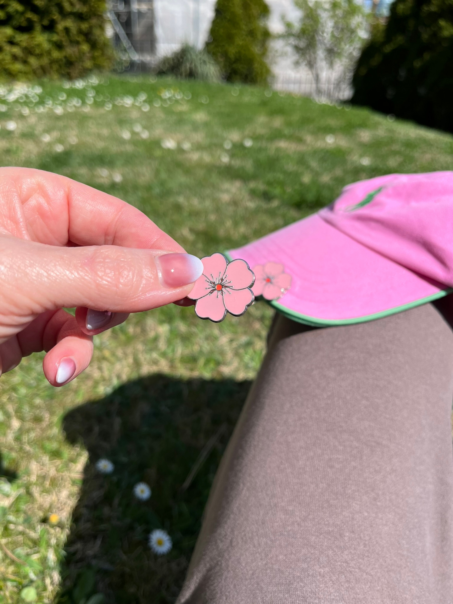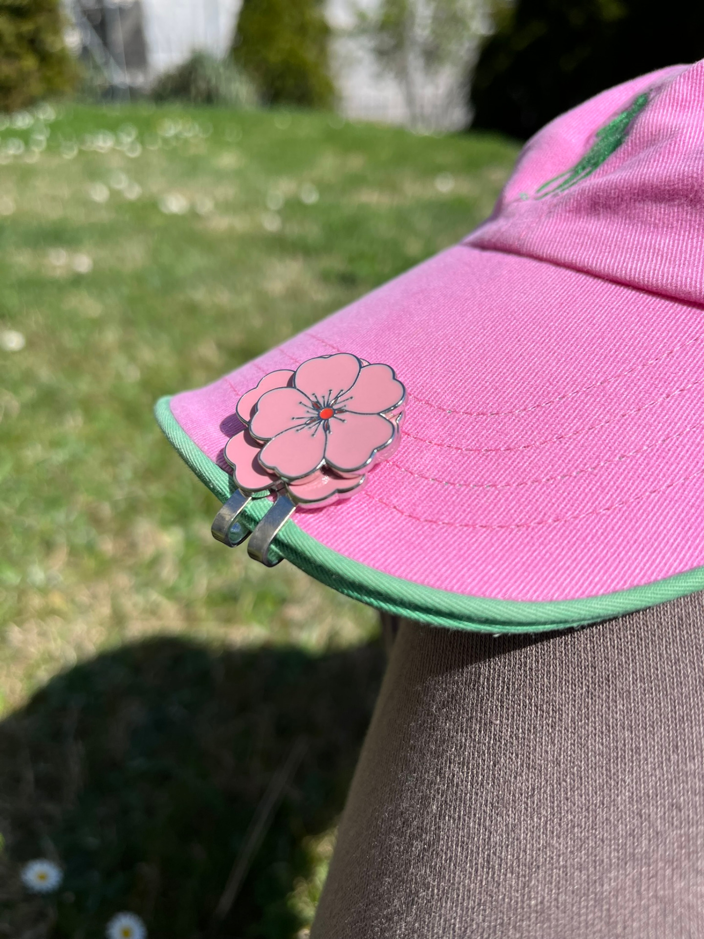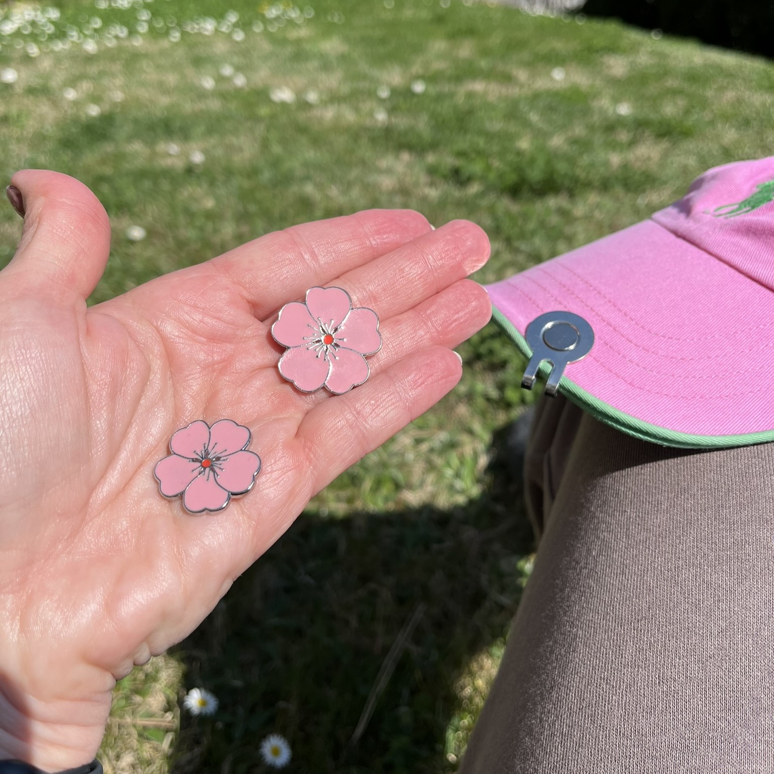 This metal golf ball marker with delicate pink flowers isn't just a beautiful accessory – it's a smart little detail that can save your game (and your mood).
