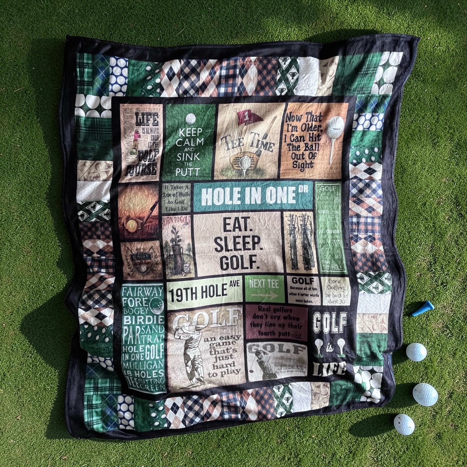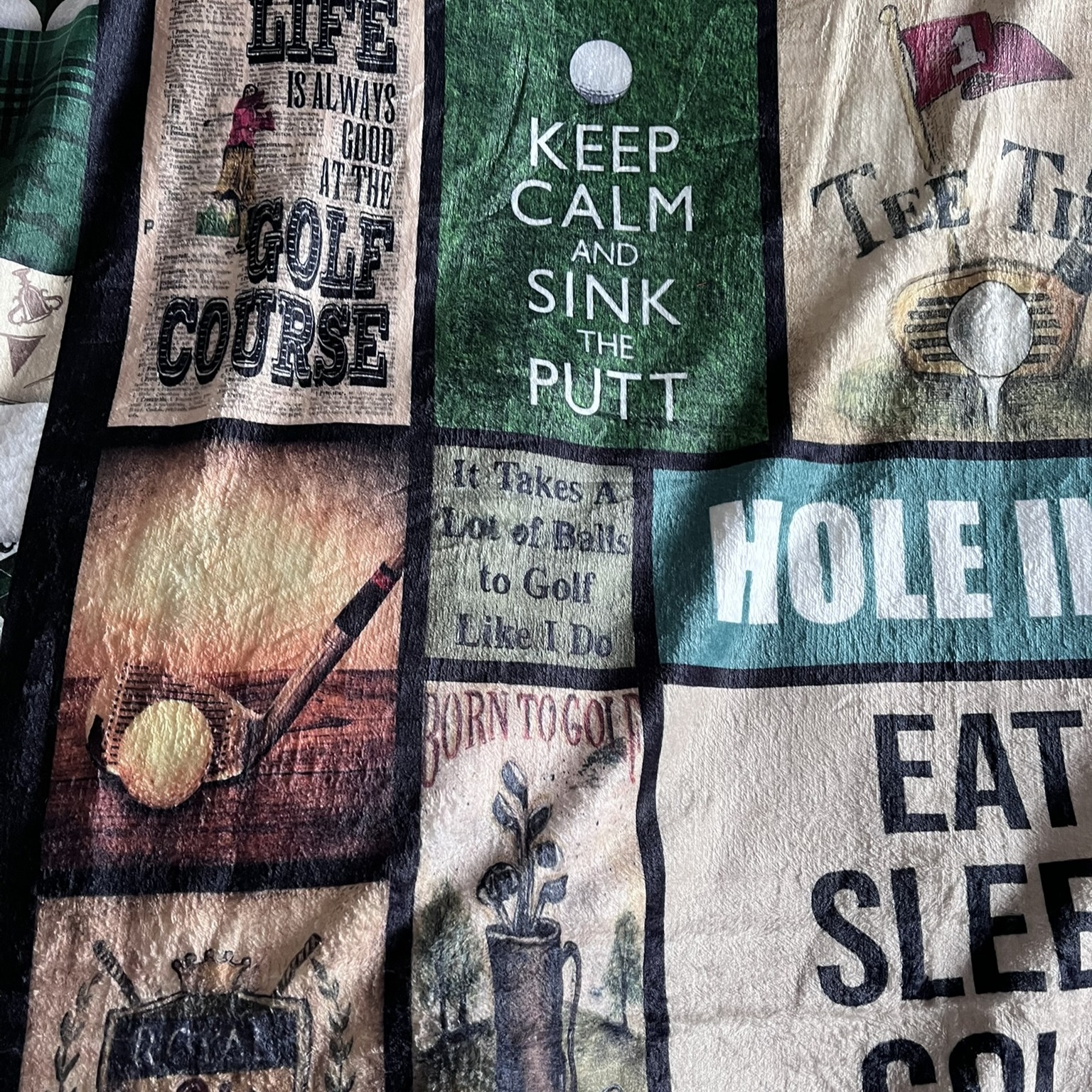 Veľká, mäkká a hrejivá deka s retro golfovými motívmi, ktorá ťa zahreje rýchlejšie než birdie na poslednej jamke. Z jednej strany štýlové vintage obrázky, z druhej čistá biela – pre prípad, že chceš oddychovať minimalisticky (alebo skryť, že si si ju práve polial vínom).