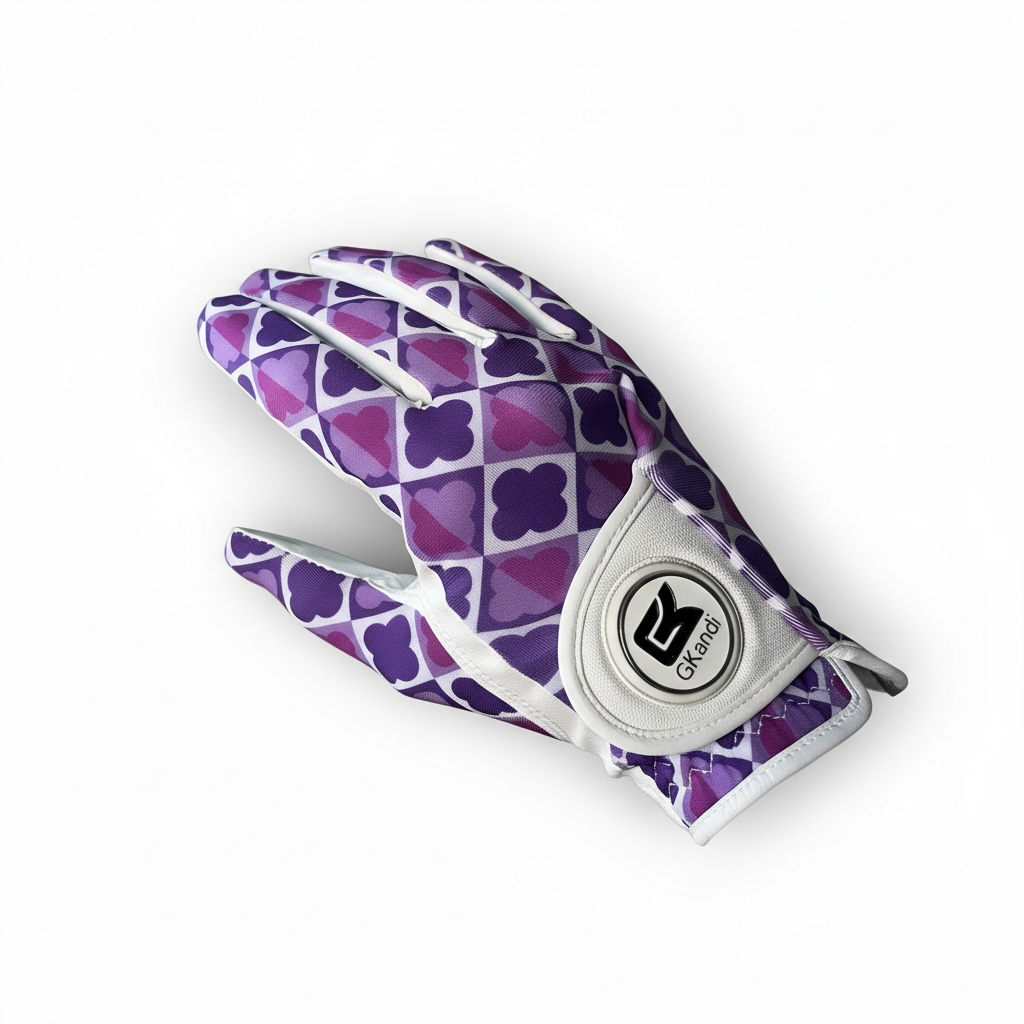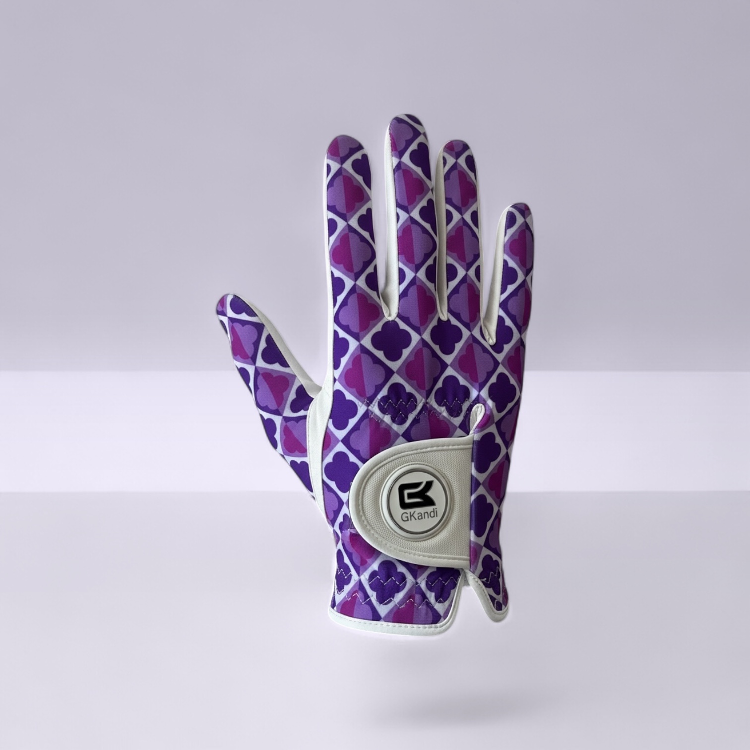 The design is truly unique – subtly inspired by a four-leaf clover for good luck, featuring elegant shades of purple and pink. The white underside adds freshness and balance, giving the glove a modern, feminine, and playful look.