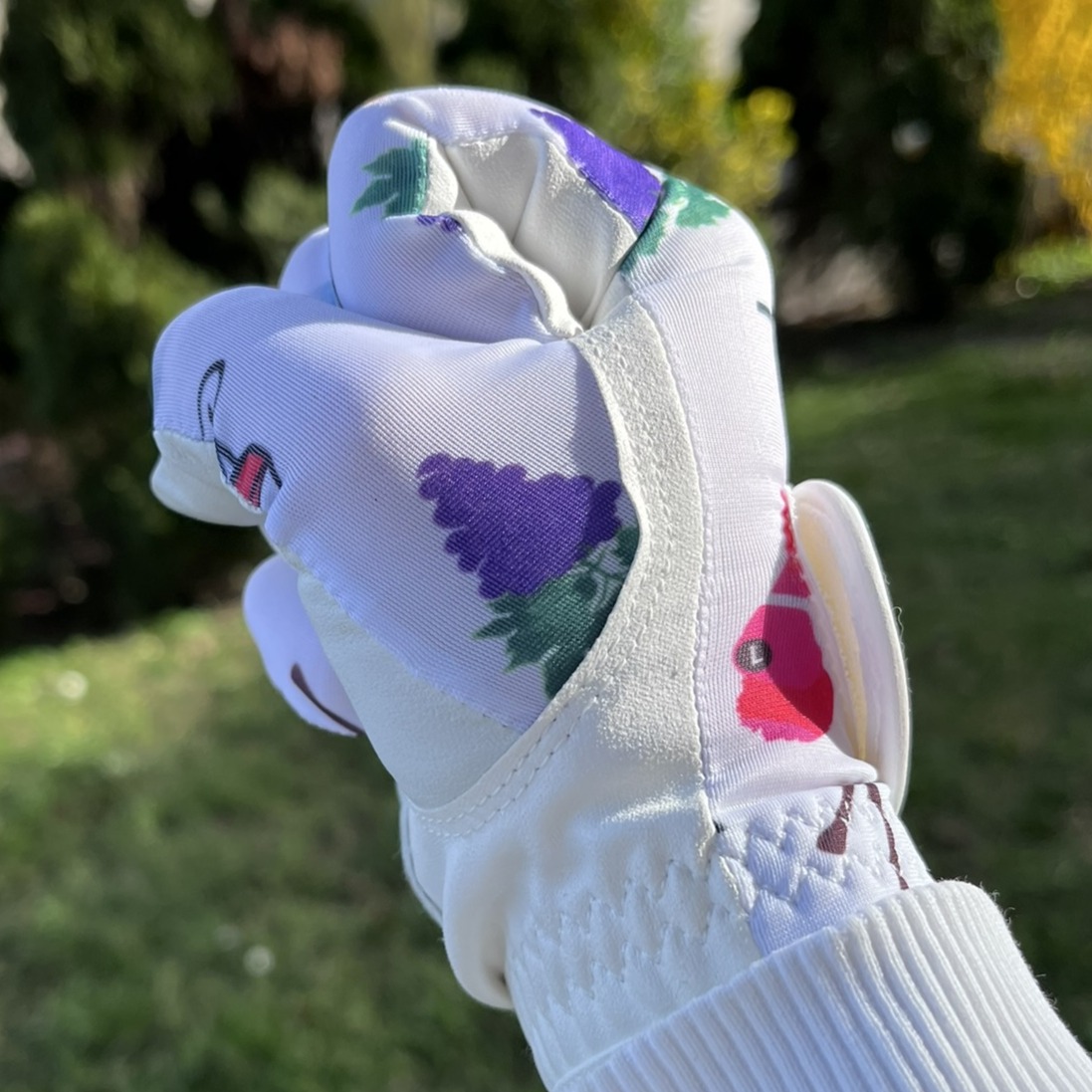 This stylish women's glove features a playful celebration motif – champagne glasses, bubbly, and golf balls – made for players who want to enjoy the game with a sense of fun and personality. Because golf isn't just about the score, it's about the experience.